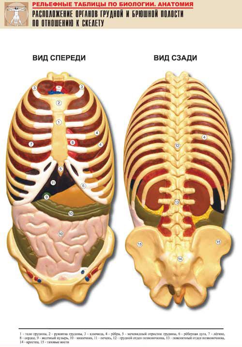 Рельефная таблица Расположение органов грудной и брюшной полостей по отношению к скелету