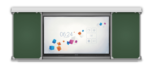 Включает 4-е поверхности для письма мелом, две из которых скользят по рельсам, скрывая интерактивную доску. Конструкция отличается высокой прочностью благодаря стальной основе и долговечному покрытию.