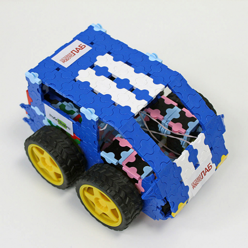 Из деталей конструктора получается робот-машинка, который ездит по линии и проходит лабиринты. В комплекте присутствуют датчики шума, температуры, влажности, освещенности и давления, что позволяет проводить с помощью собранного робота различные исследования.