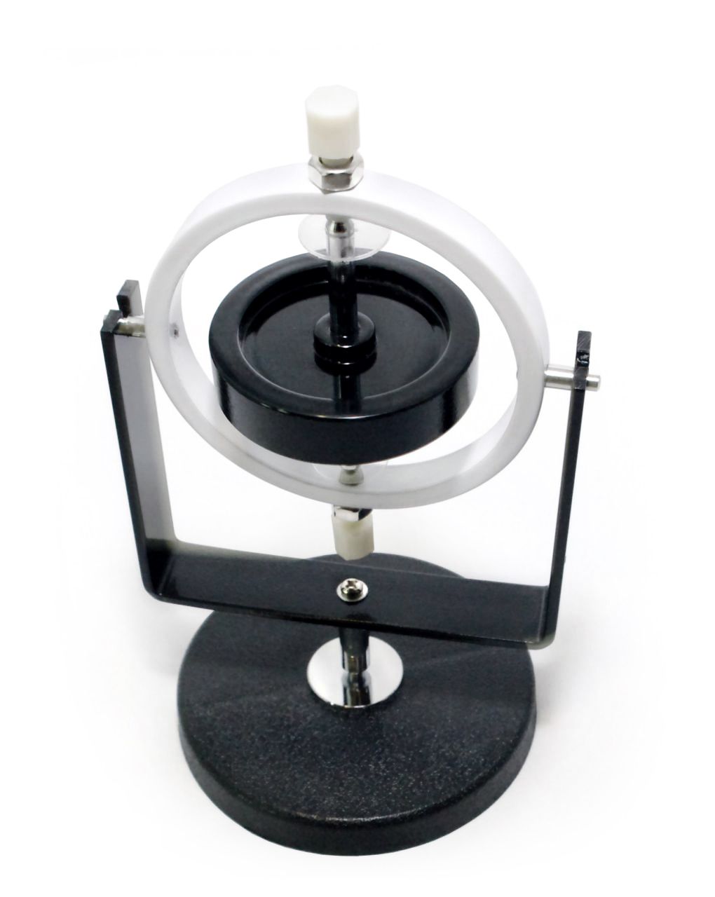 Модель гироскопа выполнена из металла, состоит из: гироскоп в держателе, шнур для придания вращения имеет рукоятку, массивное основание, подвижное основание.