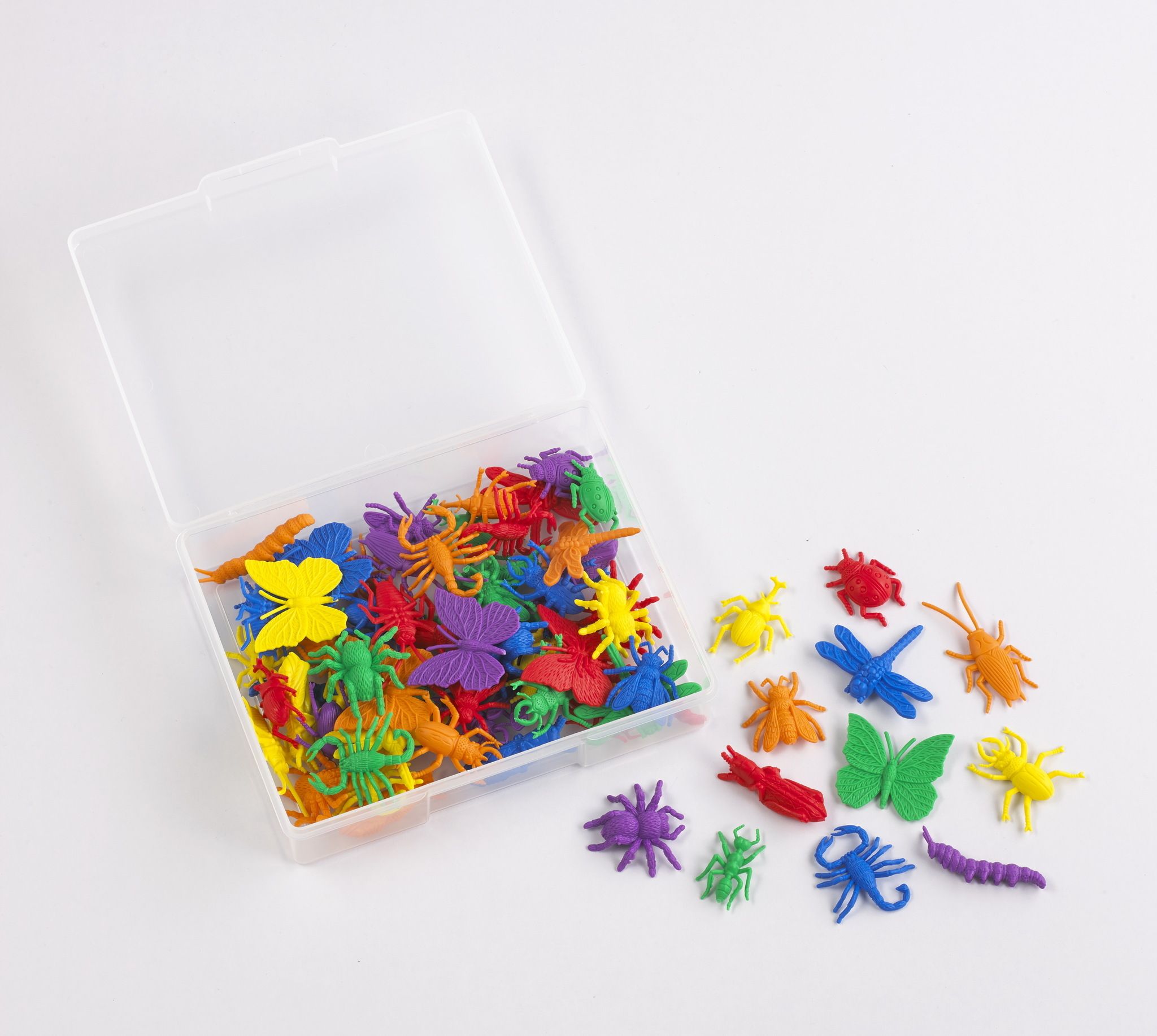В комплекте 72 фигурки. Средний размер элемента — 45х43 мм. Представлены фигурки в виде следующих насекомых: