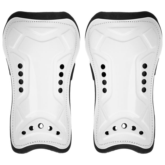 Пара щитков используется во время игры в футбол. Элемент экипировки защищает голени от повреждений. Щитки эргономичной формы поставляются вместе с креплениями.