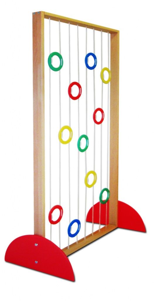 Игровая мебель «Лабиринт» предназначена для использования в игровой и сенсорной комнате ДОУ. Выполнена из МДФ, представляет собой деревянную раму, установленную на устойчивые опоры, которые не дадут конструкции опрокинуться во время игры. Вдоль рамы сверху вниз натянуты веревочки, на которых закреплены деревянные кольца.