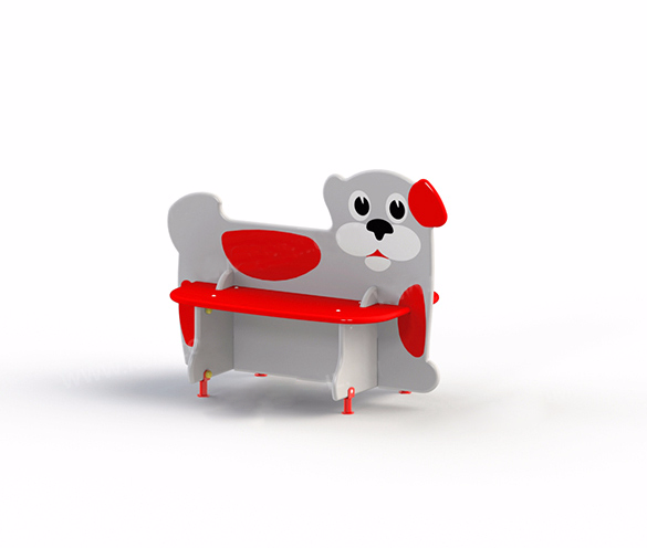 На двухсторонней скамье можно отдохнуть после прогулки. Тематически оформленная перегородка разделяет сиденья с закругленными углами. Элементы конструкции соединяются пазами. На опорах 4 металлических подпятника.