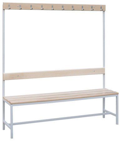 Скамья для раздевалок школ и спортивных комплексов, оснащенная десятью крючками, позволяет хранить форму, верхнюю одежду, переодеваться, оставлять обувь.