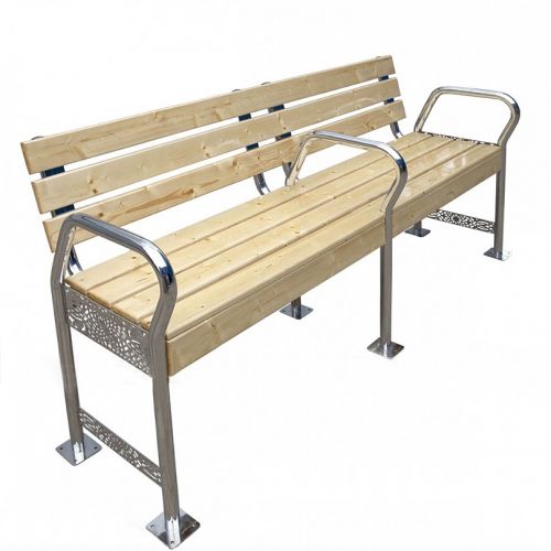 Скамья оснащена спинкой и тремя завышенными подлокотниками, которые могут использоваться людьми с ОВЗ для дополнительной опоры.