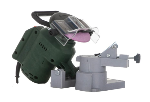 Станок затачивает цепи бензиновых и электрических пил. Поставляется в пластиковом корпусе. Основание металлическое с отверстиями для монтажа к горизонтальной поверхности.