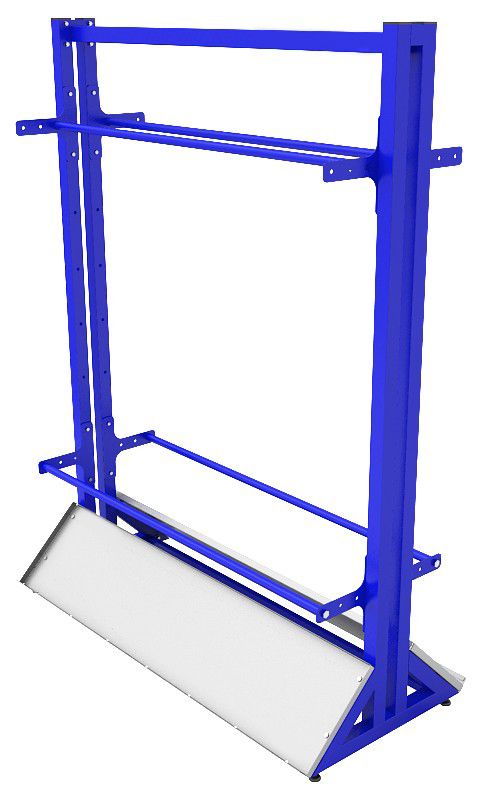 Полки и планки подстраиваются под несколько размеров лыж. Тумба покрывается порошковой краской.