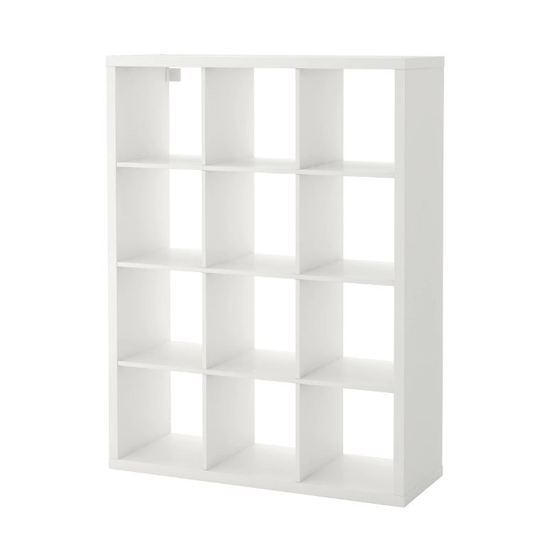Книжный стеллаж на 12 ячеек крепится к стене. Отделения расположены в 4 ряда, но перед фиксацией можно перевернуть конструкцию. Нагрузка на полку 13 кг. Монтажные приспособления (шурупы, саморезы, дюбели) в комплект не входят. Есть настенные крепления.