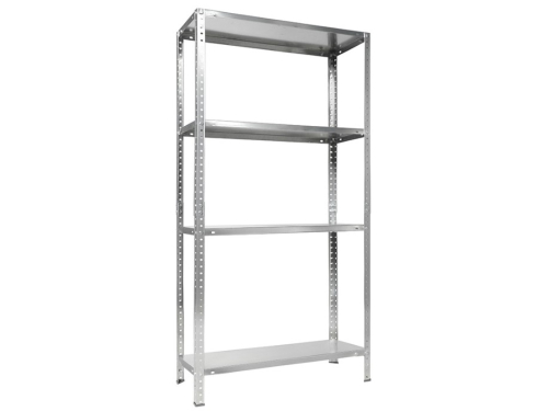 Стеллаж легко собирается при помощи болтов и гаек. Ребра полок и края стоек завальцованы для предотвращения травм.