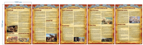 Стенд посвящен мировой истории. Содержит информацию об исторических периодах и важнейших событиях, а также красочные иллюстрации.