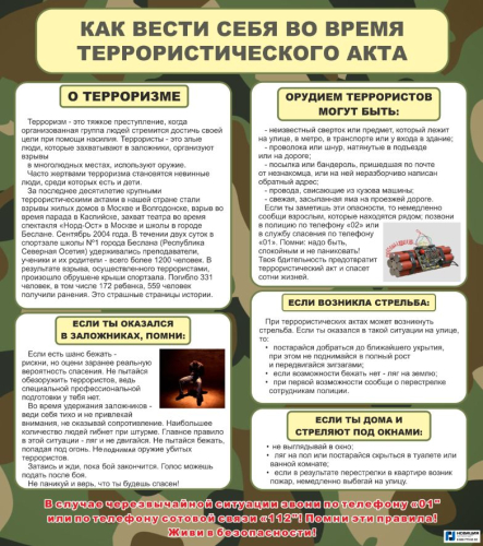 Стенд Как вести себя во время терроризма, 0,8х0,9 м