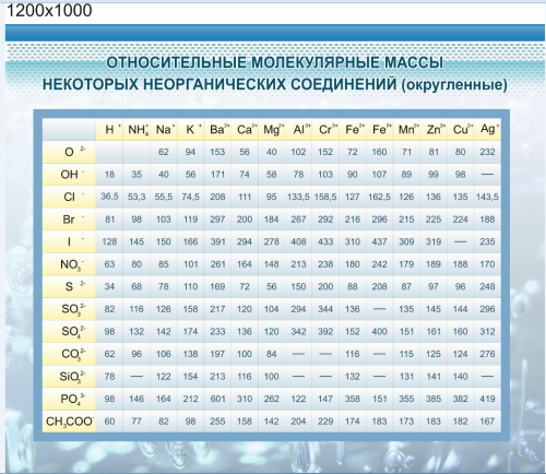 Стенд Относительные молекулярные массы, 1,2х1 м