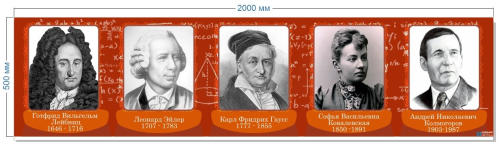Стенд с портретами известнейших ученых (Ковалевская, Гаусс, Лейбниц и др.) можно повесить на стене кабинета математики в школе. Имена, которые часто упоминает учитель, теперь будут ассоциироваться с лицами и эпохами.