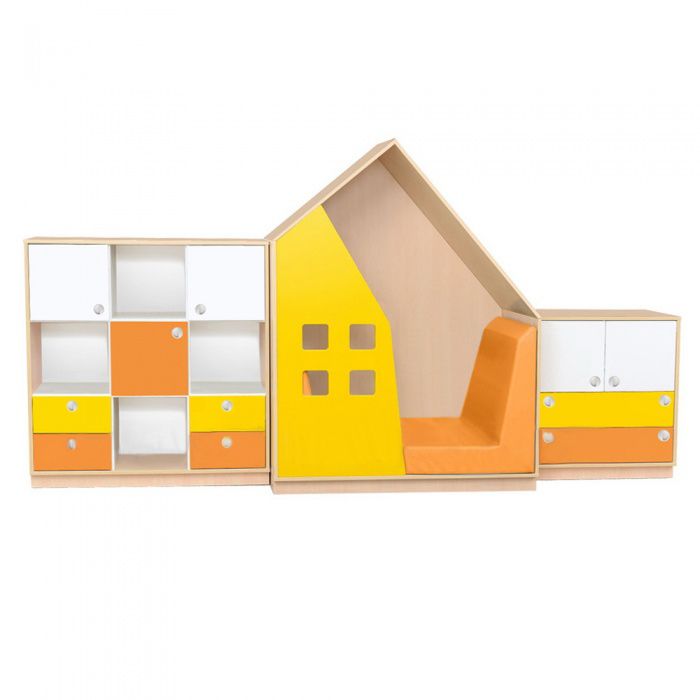 тумба с 3 дверцами и 4 выдвижными ящиками, 900х350х900 мм,, стенка в форме домика, 1100х500х1300 мм,, тумба с 2 распашными дверцами и 2 выдвижными ящиками, 600х350х600 мм