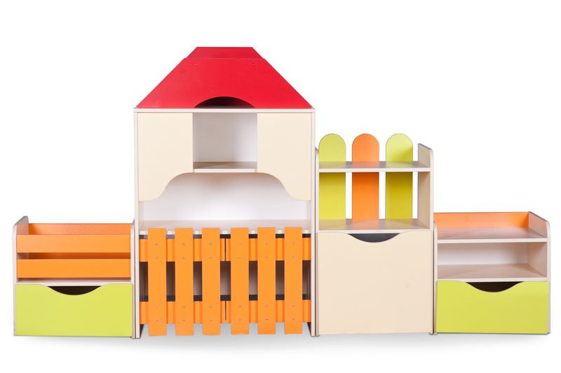 Стенка игровая «Веселая Ферма» используется в детском саду для хранения игрушек и дидактических пособий. Высота игровой стенки всего 1290 мм, поэтому игрушки и пособия находятся в зоне досягаемости ребенка.