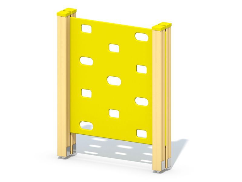 Стенка для перелезания включает в себя 4 столба из клееного бруса, сечением 100х100 мм, и плоскую поверхность с отверстиями, закрепленную между ними. Прорези служат зацепами для рук и ног. Конструкция применяется для тренировки выносливости, укрепления мышечного корсета и конечностей.