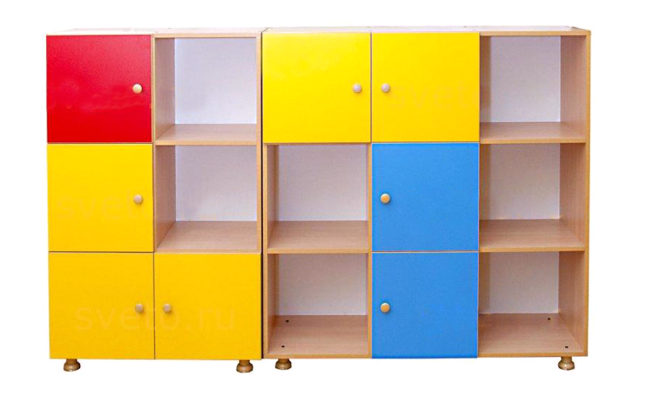 Стенка модульная для ДОУ может использоваться для хранения игрушек и принадлежностей, пособий, игровых и профессиональных наборов.
