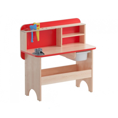 | В комплекте | Стол в виде верстака;, Тиски игровые пластиковые;, Игровой столярный набор из трех предметов ножовка, топор, молоток;, Пластиковый лоток |