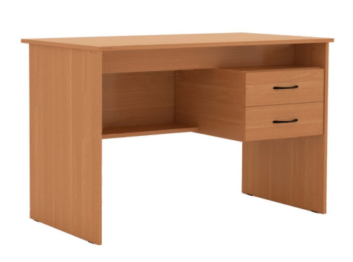 Функциональный учительский стол с тумбой подойдет для обустройства учебных классов в школе. Конструкция состоит из столешницы, передней панели, с внутренней полкой, и тумбы с двумя выдвижными ящиками. Опоры стола защищены пластиковыми подпятниками.