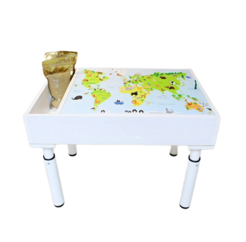 Столик для рисования песком размещается в сенсорной комнате или кабинете психолога. Мебель используется во время игр, творческих занятий, терапии. Контакты с песком развивают мелкую моторику и речь, помогают снять напряжение. Сыпучий материал преобразуется в геометрические формы. На нем можно писать буквы и цифры, выводить узоры.