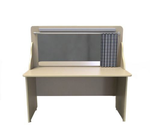 Мебель используется во время занятий по коррекции речи и зрительно-моторного восприятия, формированию правильного дыхания. Встроенное зеркало с подсветкой и ширмой позволяет наблюдать за артикуляцией при выполнении упражнений. При необходимости зеркало зашторивается.