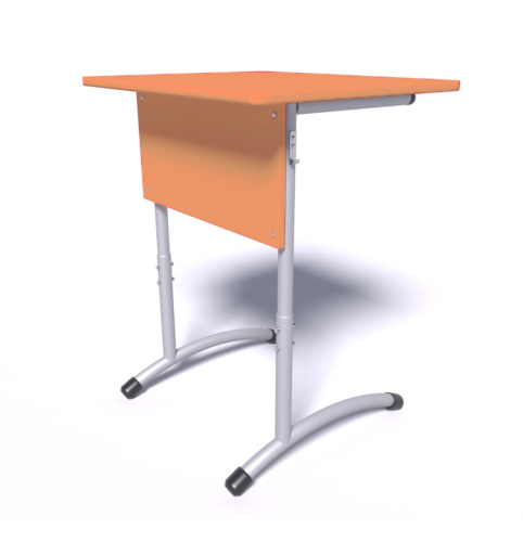 Одноместная парта регулируется по высоте. Каркас выполнен из круглой трубы диаметром 28 мм и 32 мм, столешница — из ЛДСП. Предусмотрено телескопическое соединение.