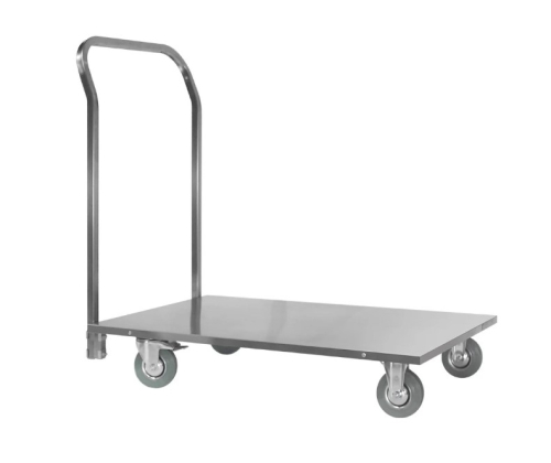 Платформа грузового оборудования изготавливается из нержавеющей стали толщиной 0,8 мм. Металлическая ручка устанавливается на высоте, оптимальной для управления конструкцией.