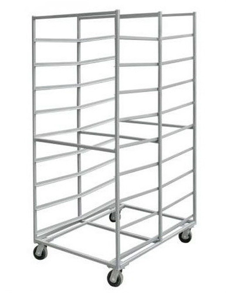 Профессиональное кухонное оборудование изготавливается из профильной трубы. 2-секционная конструкция оснащается направляющими из нержавеющего металла. Боковые стенки изделия представлены перекладинами. Хлебные лотки закрепляются на 9-ти уровнях. Поворотные колесные опоры покрываются резиной.