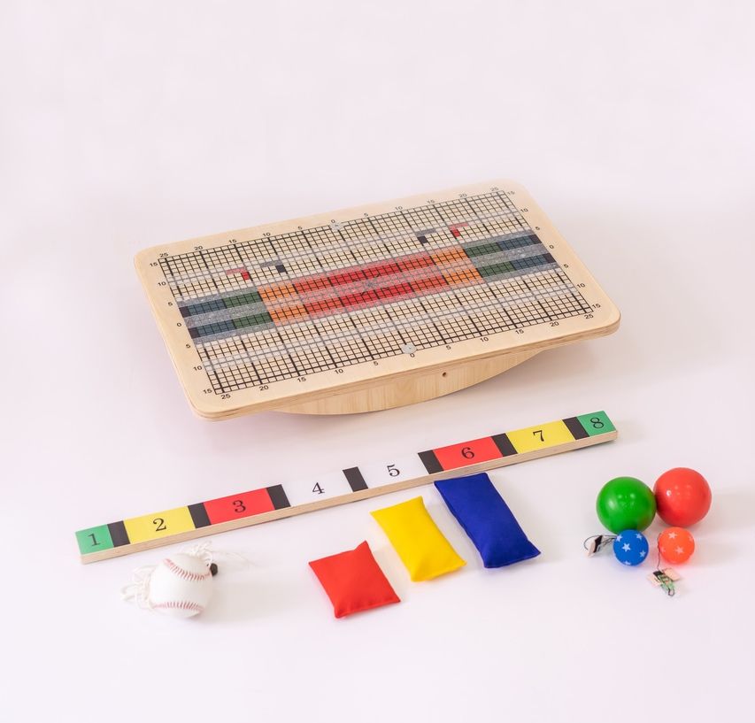 | В комплекте | балансировочная доска (цветная, покрытие противоскользящее);, планка для отбивания;, мяч-маятник;, мешочки с крупой (3 шт.);, кинезиологические мячи (2 шт.); |