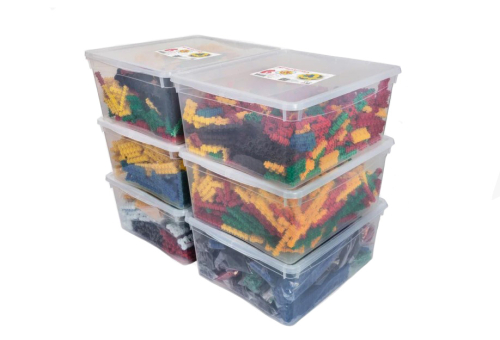 Обучающий комплект рассчитан на группу до 15 человек. Детали крепятся друг к другу во всех плоскостях. В наборе 12 типов элементов восьми разных цветов, из которых можно сконструировать до 100 вариантов моделей.