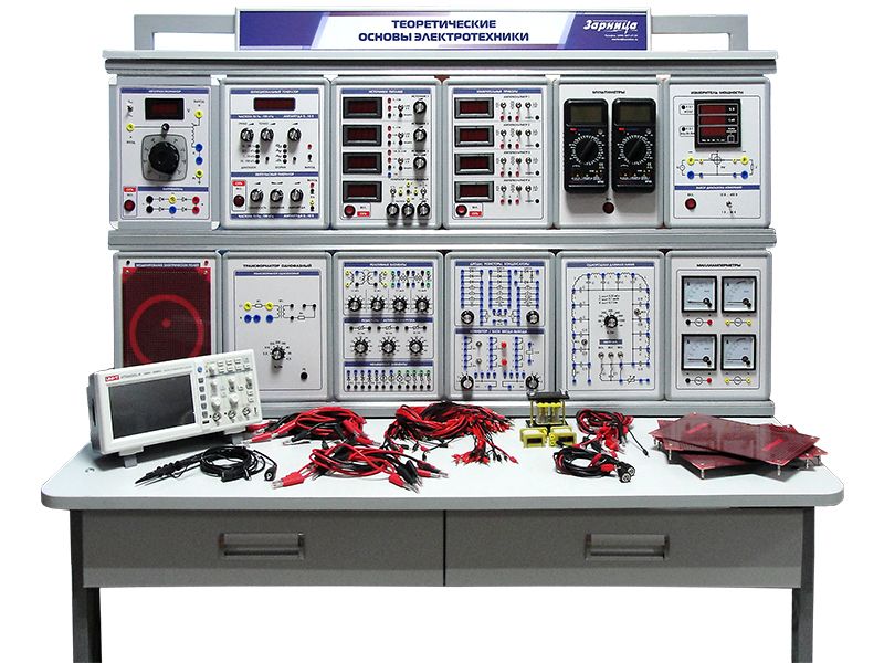 Комплект для изучения основ электротехники представлен отдельными модулями и специальной мебелью. Стол с 2-мя контейнерами дополняется стендом, измерительными приборами, реактивными и нелинейными элементами, резисторами.