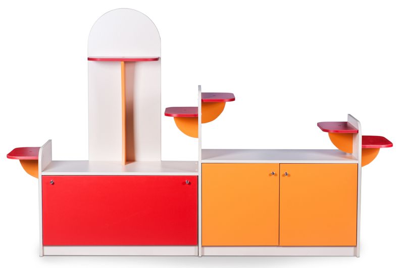 Это изделие отлично подойдет для оформления уголка природы в детском саду. В уголке природы предусмотрены полочки для цветов и для установки аквариума или клеток с животными. Яркий дизайн уголка природы не оставит равнодушными ни взрослых, ни детей.