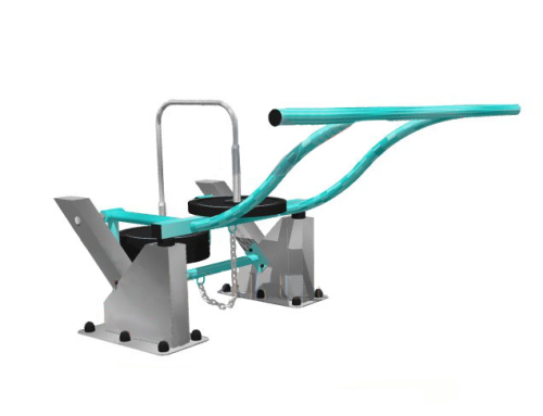 Давление оказывают обрезиненные диски из чугуна (5 шт.). Максимальный вес 60 кг. Установка подходит для детей ростом от 140 см. Металлокаркас крепится к закладной раме (с последующим вкапыванием и бетонированием) или к бетонному основанию (анкеры в комплекте). Метизы для соединений оцинкованы.
