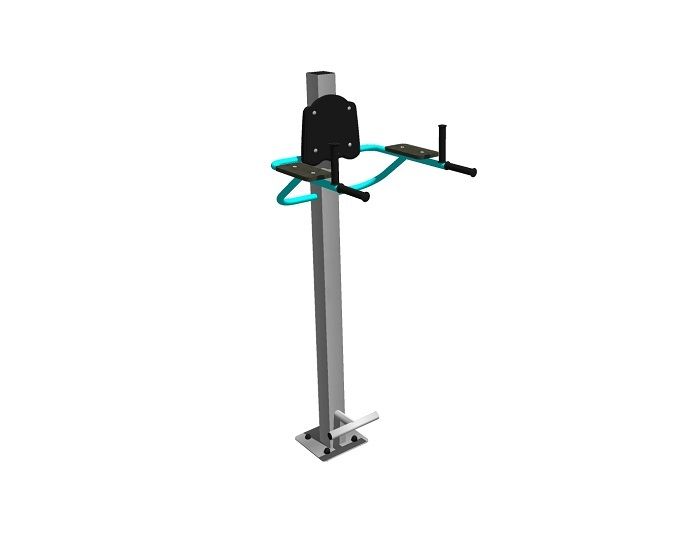 Подойдет для людей ростом от 140 сантиметров. Тренажёр позволяет выполнять два типа упражнений: подъём ног для укрепления мышц нижнего пресса и жим на брусьях для тренировки мышц спины, груди и плеч. Оснащён подножкой для удобства занимающихся.