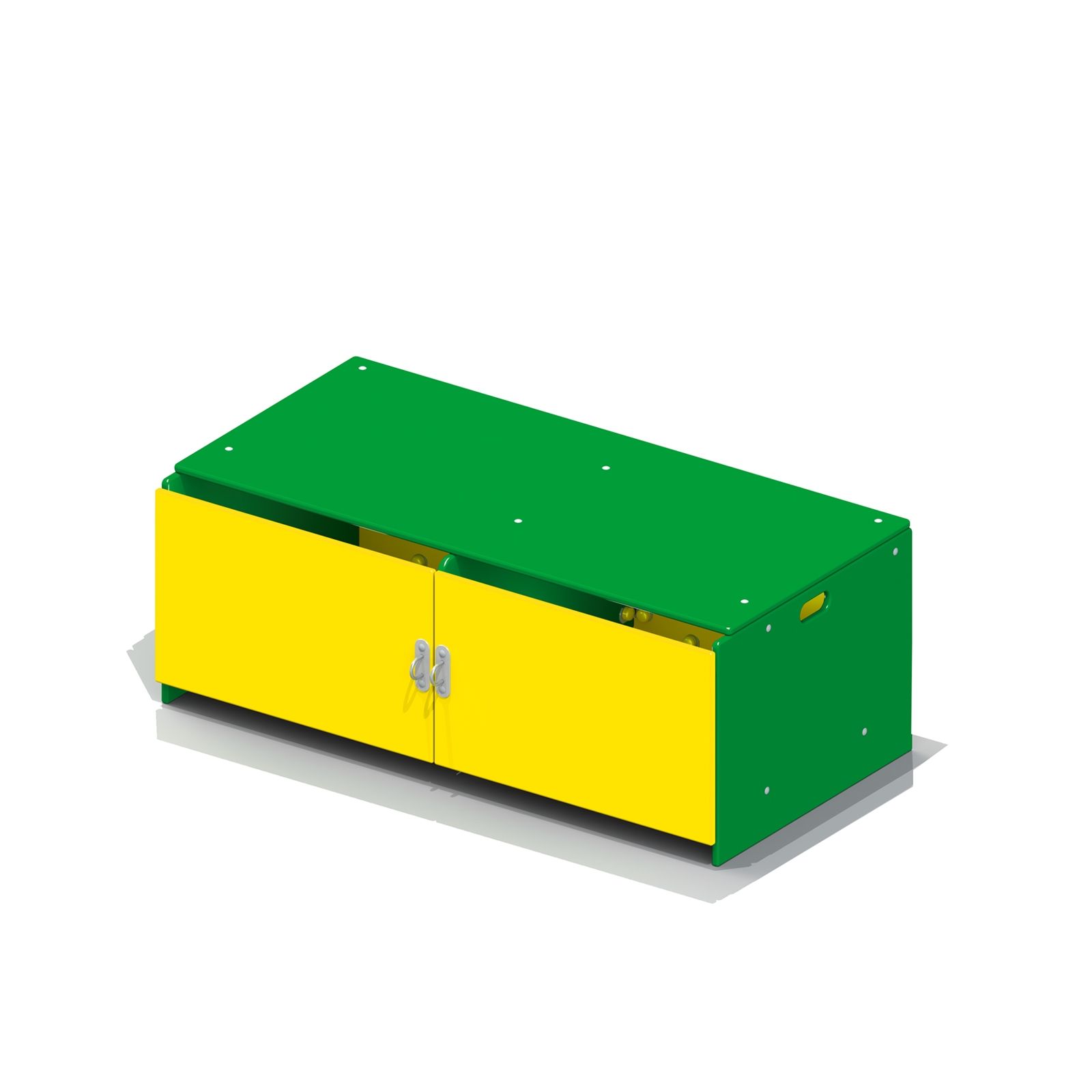 Ящик для хранения игрушек и спортивного инвентаря устанавливается на территории ДОУ или школы. Всепогодная конструкция изготовлена из влагостойкой фанеры. Металлический крепеж оцинкован.
