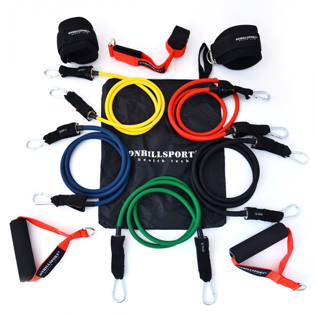 | В комплекте | 5 трубок (нагрузки 4.5, 6.7, 9, 11.25, 13.5 кг) с карабинами,, 2 манжеты,, 2 рукоятки,, дверное крепление,, сумка |
