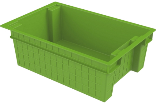 Если взять несколько таких ящиков, то их можно составлять друг на друга или складывать один в другой. Это получается благодаря специальным боковым сторонам (выступ и выемка).